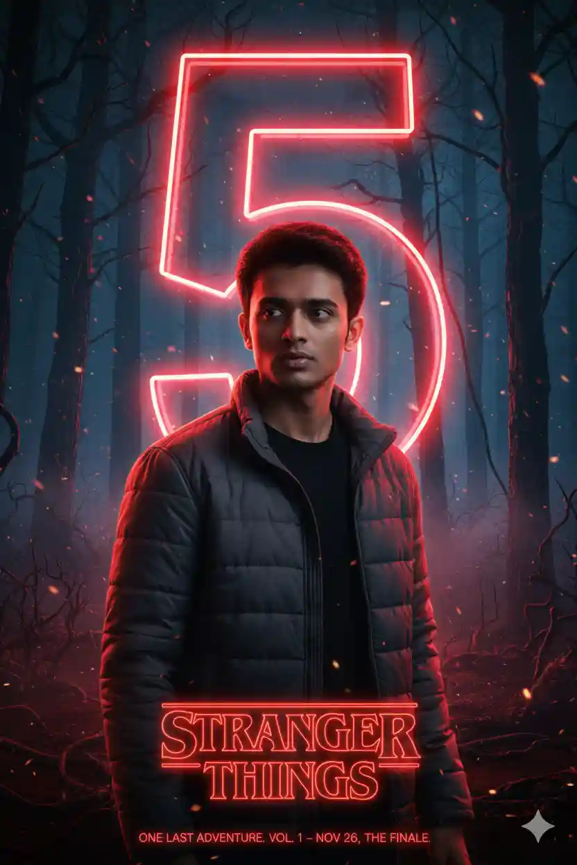 Google Gemini Stranger Things AI photo editing prompts are a powerful way to turn your normal photo into dark, cinematic 80s horror posters that look ready for Netflix in 2025. Many people are creating Stranger Things trending photos using Google Gemini’s Stranger Things AI Photo Editing Prompts. If you’d like to create your own Hollywood-style Stranger Things photos, then you are in the right place. As you know, Stranger Things Season 5 was just released a few days ago. This is a popular web series that is exclusively launched on Netflix.